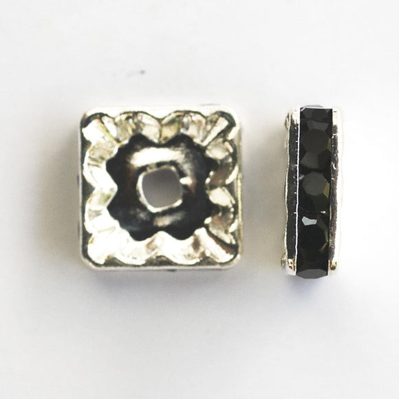 metal 10mm sqr diamante ron sil/blk 14pc