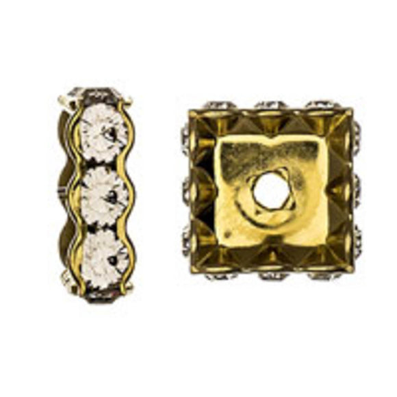 Austrian Crystals 14mm sq rondell gold clear 2pc