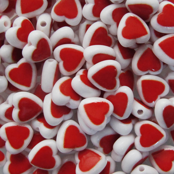 Plas 8mm White/Red Love Heart 120pcs