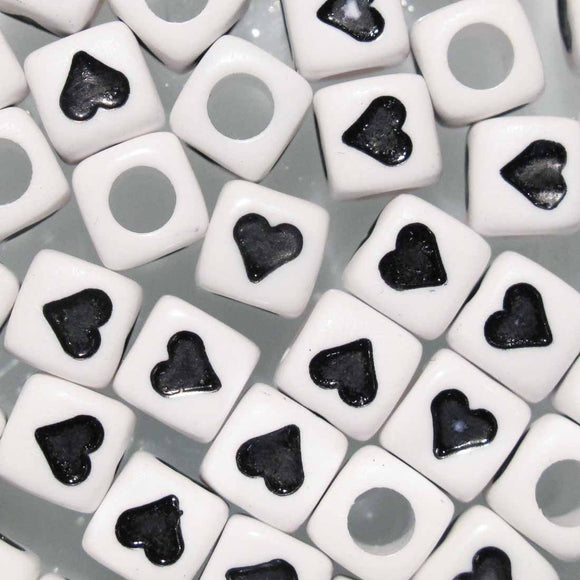 Plas 7mm cube hearts black/white 50pcs