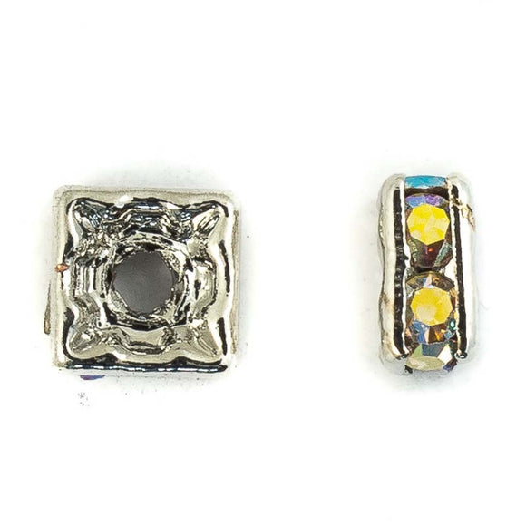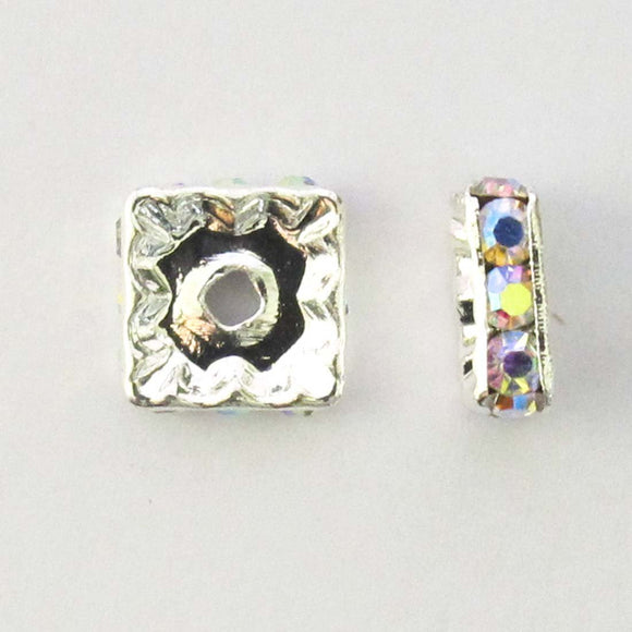 metal 8mm sqr diamante rond sil/clrAB 16