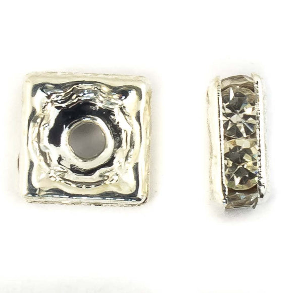 Metal 6mm squ Austrian Crystals rond sil/clr 20p