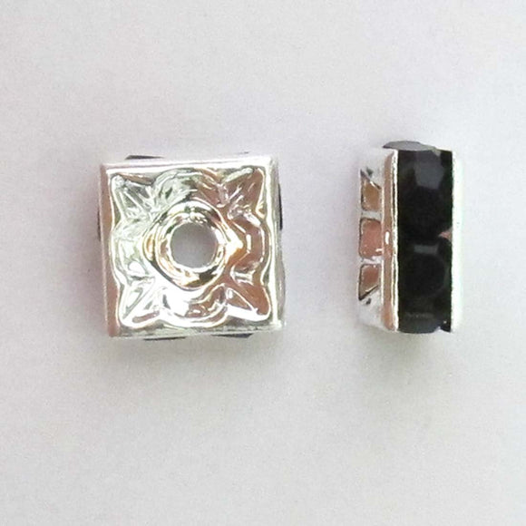 Metal 8mm squ diamante rond sil/blk 16p