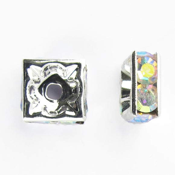metal 10mm sqr diamante ron sil/clrAB 14