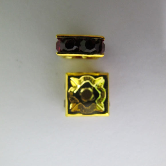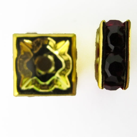 metal 8mm sqr diamante rond gld/siam 12p