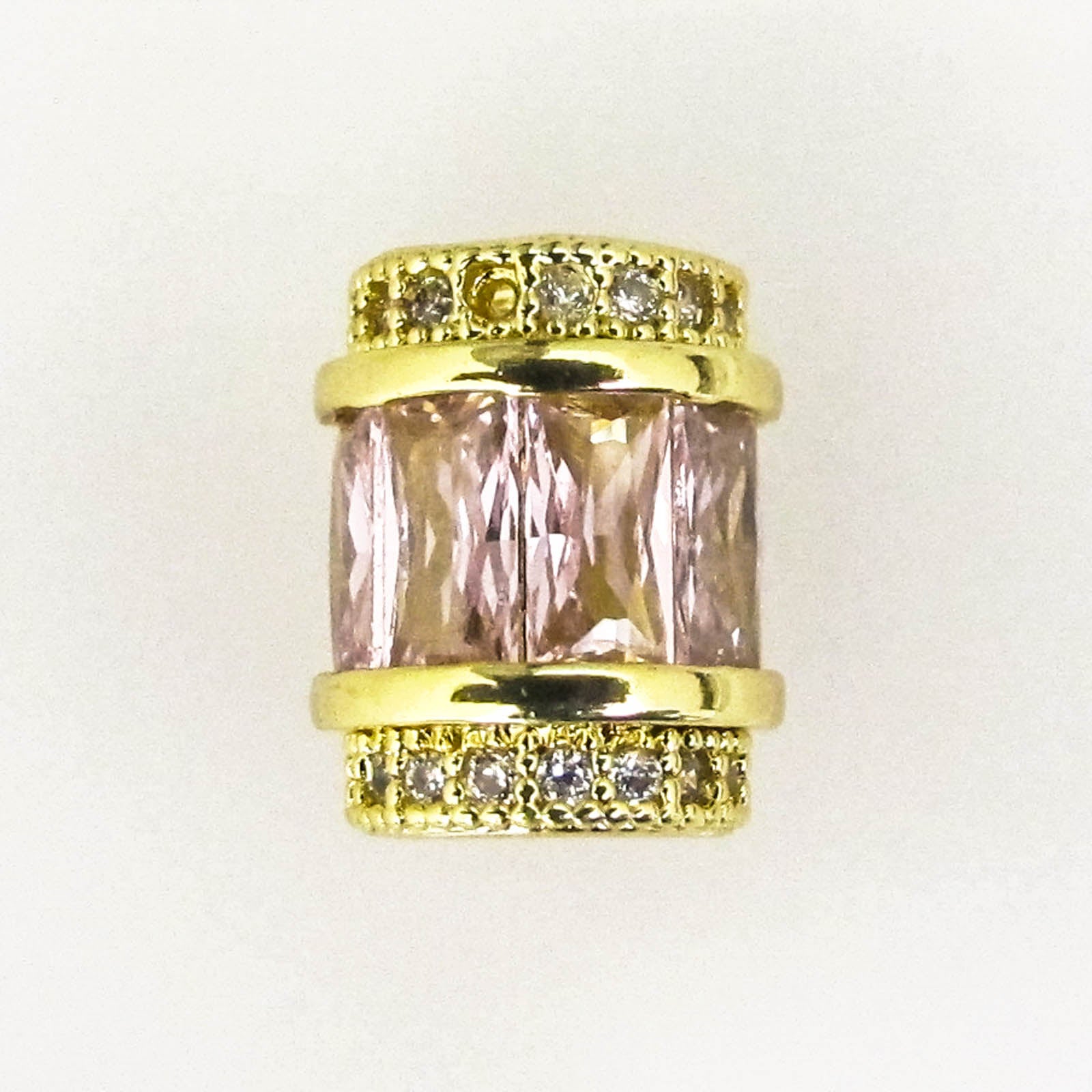Metal 12x8mm Tube with a pink colour faceted glass bead and Nickel Free Gold plated end caps 1 piece
