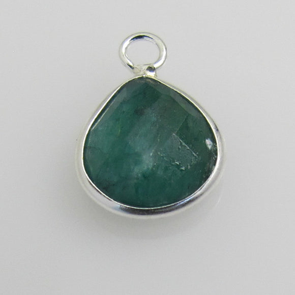 Sterling Sil 10mm drop Emerald 1pcs