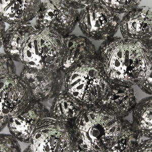 Metal 10mm rnd filagree bead NICKEL 100p