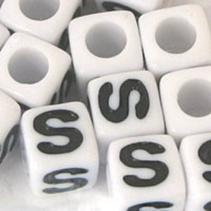 Plas 7mm cube black/white letter S 20pcs