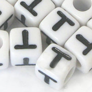 Plas 7mm cube black/white letter T 20pcs